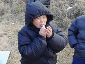 2002年1月1日的上午10时,在韩国罗州的圣母圣山上,朱利亚和一群朝圣者对着耶稣十字架圣像祈祷。