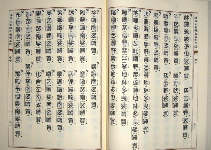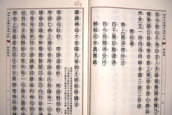 (2)經中幾乎所有的音譯詞,均附上簡易拼音型的梵文,義譯詞則附上漢語拼音式的羅馬拼音符號。二者皆附上國語的注音符號。期望即使在眾多異國人士共修的場合,使用此經本也能收異口同聲之效。