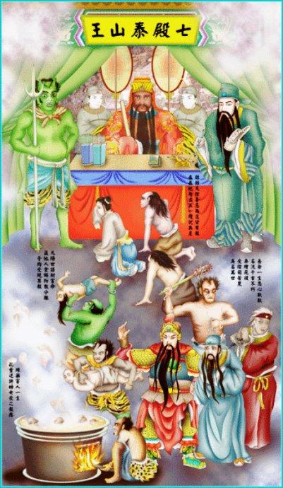 馬上到第七殿正在審判一男靈,他看上去還很斯文不知犯何罪,被判官判500年吞銅丸罪。細看原來此男靈在生時有一個正室兩個固定情人,他生前喜好非時非地非器行淫;他這三位伴侶正好可滿足其欲望,他一生只有這三位伴侶。