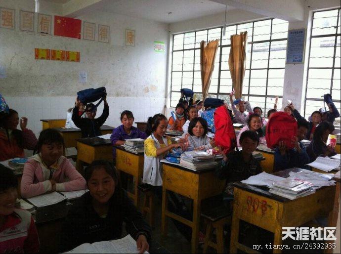 照片都是学生随便拍的, 拍得不好, 只是让老师感受一下他们收到文具,书包的喜悦. 在这些山区裹面, 他们需要多些关怀, 学生会尝试写一,两个故事分享。