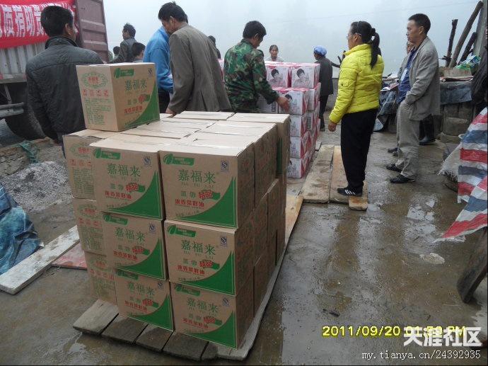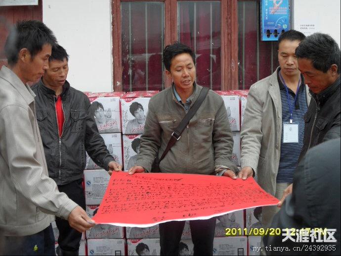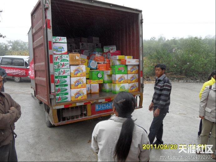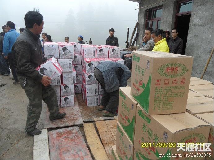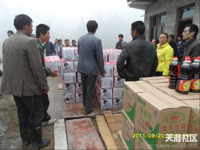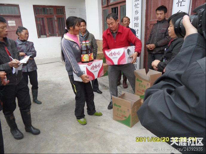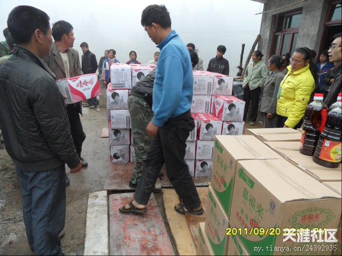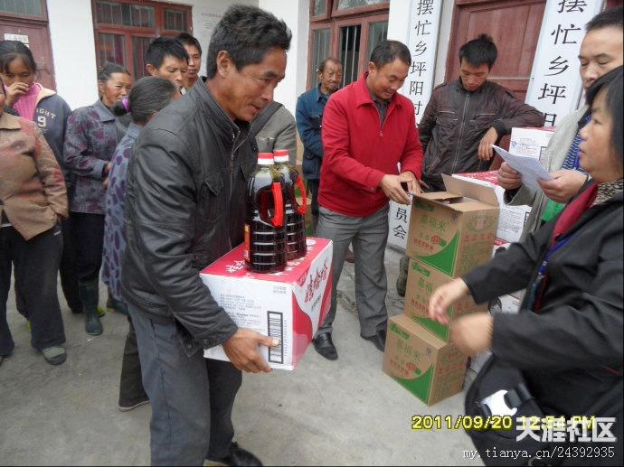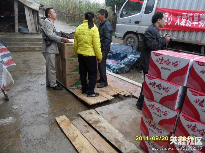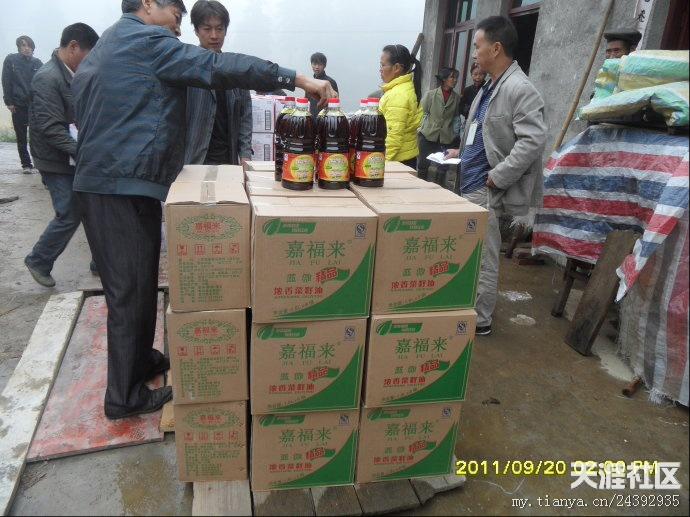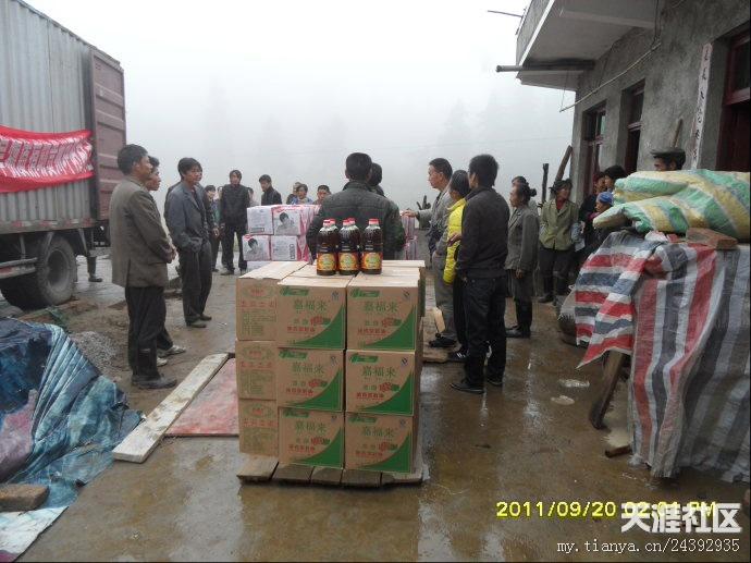 20日早,天刚刚亮,气温很冷,要穿风衣、羽绒服之类的衣服。我们的老师早早赶到离市区10公里外的库房装矿泉水。有的莲友去取布标,有的老师去提取菜油,有的去采购蔬菜。18日-20日,我们接受了“冰火两重天”的考验,看来不管是什么样的气候,都不能阻挡我们去抗旱一线的心愿。带着外地善心莲心师兄们的爱心从市区出发,天空下着冷雨,路面湿滑,汽车艰难的行驶多时,才到达坪阳村村委会,到村委会的时候,很多村民已在寒风中等候多时,见到我们的到来,大家脸上露出了舒心的笑容。首先村长讲话,对我们此行的目的,对村民一个宣传以及对外地师兄善心莲心爱心团的感谢,然后是我们爱心团的代表发言,接下来是物资的发放。几位70多岁老奶奶激动的热泪盈眶,积极跑去搬货,我们生怕老奶奶体力不支,要替换老奶奶,老奶奶就是不同意,她说,她心里高兴啊,多搬几次都愿意。