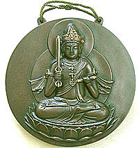 五髻文殊菩萨之形象,手持宝剑及骑狮子,顶结五髻,表示大日如来之五种清净智慧(法界体性智、大圆镜智、平等性智、妙观察智、成所作智),手持般若宝剑,象征金刚般若智,犹如利剑能断众生一切之烦恼;骑乘狮子,表示智慧之威猛。