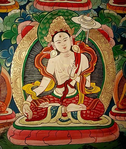 又世世生處,不受施礙、羅刹、餓鬼、臭及身臭等身,又不受人中貧窮之身。又具足無量無數恒河沙數正覺出有壞之福祿也。你修持大白傘蓋佛母,福祿就如佛的福祿一樣。