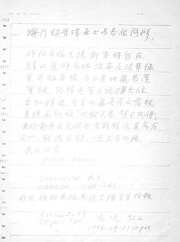 馮馮前輩來函手稿