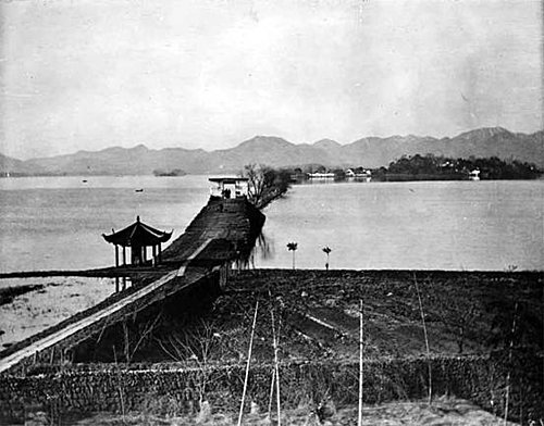 此两帧为清光緖31年 (1906年),近100年前的杭州西湖照片.西湖原为隋朝开创天台宗高僧智顗大师所立的放生池.隋朝到清朝到今日,朝代岁月怱怱,犹似隋唐境物,跃入眼帘.人已变化多端,然而青山绿水,好像痴心地等待有缘人旧地重游,重来放生.